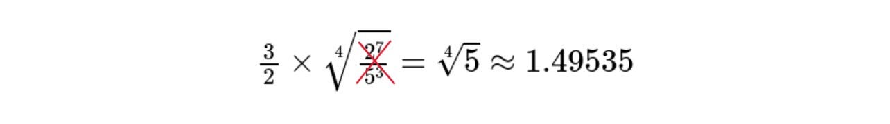 Notice that the denominator on the right-hand side is the same thing as a pure-third-plus-two-octaves repeated three times: